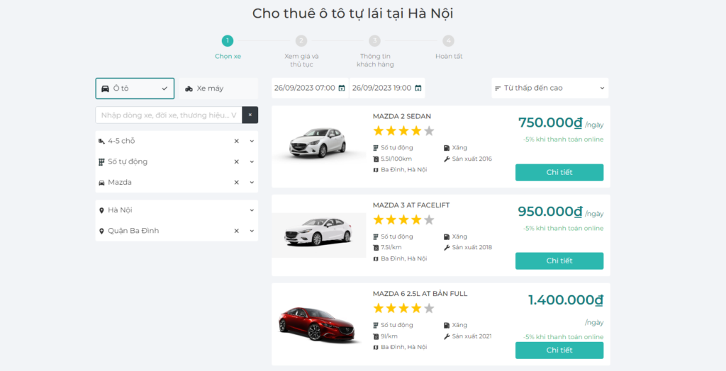 Chọn xe bạn muốn. Mẹo : Dùng bộ lọc bên trái để tìm xe đúng nhu cầu của bạn nhanh hơn.