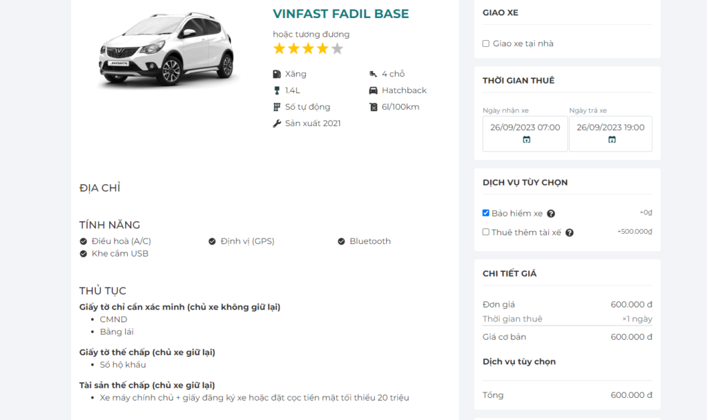 Giá thuê xe tự lái theo ngày mới nhất (Update 9/2023)